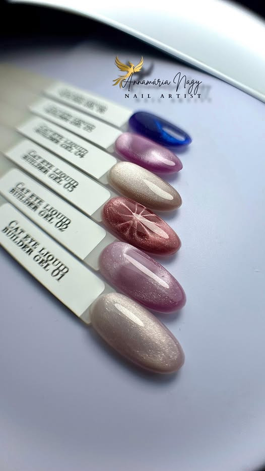 Cat-Eye Liquid Builder es un material de construcción moderno con una consistencia líquida, pero muy estable. Combina la resistencia de los geles builder con la profundidad especial de los pigmentos cat-eye. Desarrollado para la técnica sin limado: es autonivelante, se alisa perfectamente y ofrece una forma impecable con mínimas correcciones. Con la ayuda de un imán se pueden crear líneas de luz únicas y un profundo efecto 3D, mientras el material permanece flexible, duradero y brillante.