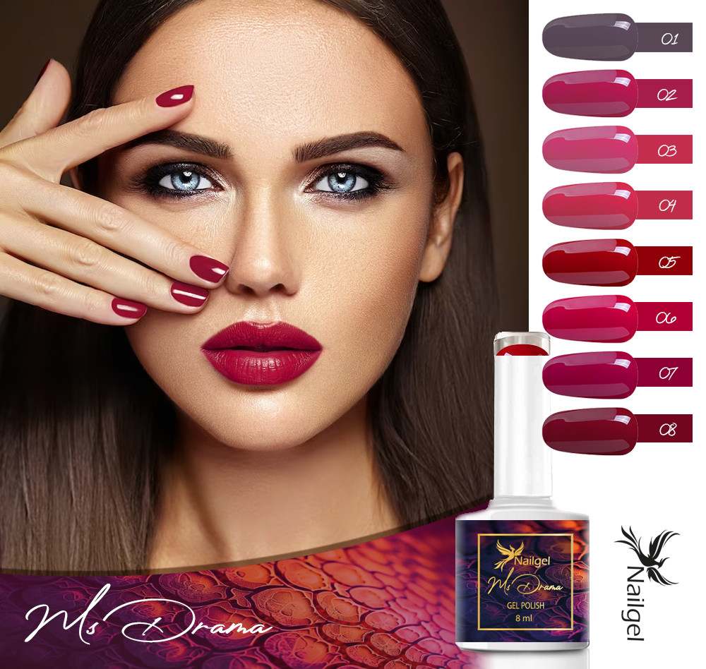 Si tu invitado está enamorado del color rojo y los tonos, definitivamente debes probar los otros colores de la colección de barniz de gel Ms.Drama con él, si no, entonces inmediatamente te convencerá de que necesita un color de uñas tan hermoso.